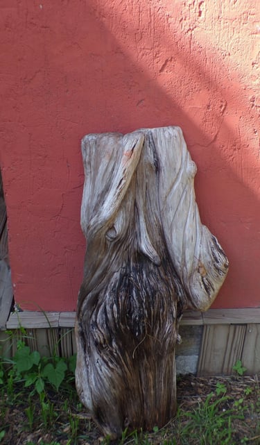 Stoker’s art is grounded in a deep curiosity about nature’s silent rhythms—from the swell of tree rings to the textures worn smooth by weather and age. His carvings become meditations on growth, decay, and renewal, capturing the quiet energy that flows through forests and wild places. The tactile surfaces and earthy tones suggest that each work carries a memory, a story stored within its fibers.